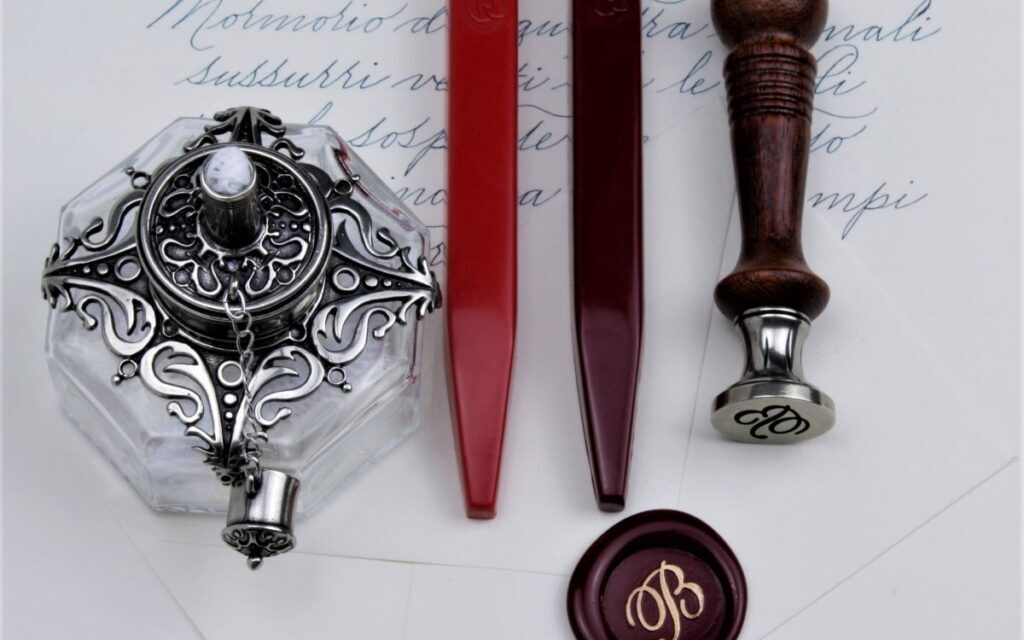 Set Rialto – Sigillo in legno – ceralacche e Spiritiera – Rialto Set – Wooden seal – sealing wax and spirit bottle – TASIG30