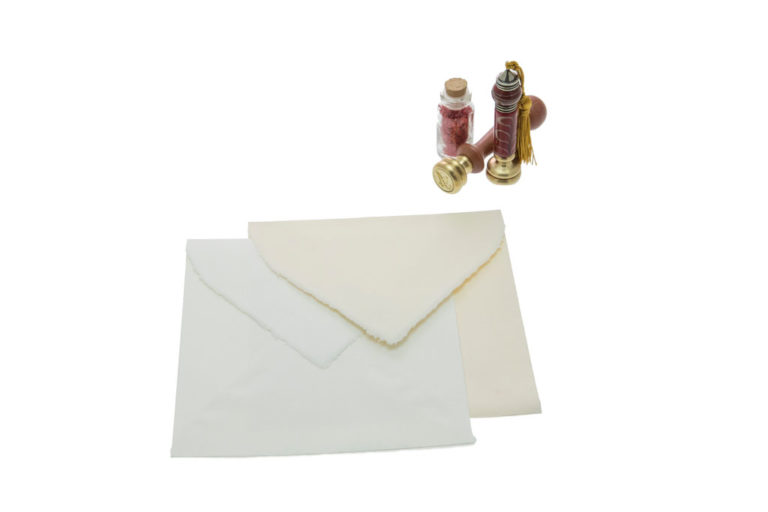 Busta quadrata in carta a mano di Amalfi prodotta dalla cartiera Amatruda.