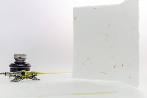 Foglio A5 120 gr/mq che misura 22×17,5cm di carta di Amalfi fatta a mano in cotone 100%.