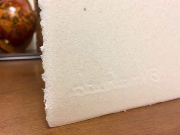 La grammatura della carta è 120 gr/mq ed è fatta a mano in 100% cotone.